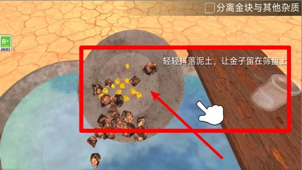 3.分离金石杂质:通过在筛盘中轻轻摇晃洗净泥沙,使金块沉在底部便于分离提取,操作简单成就感十足。