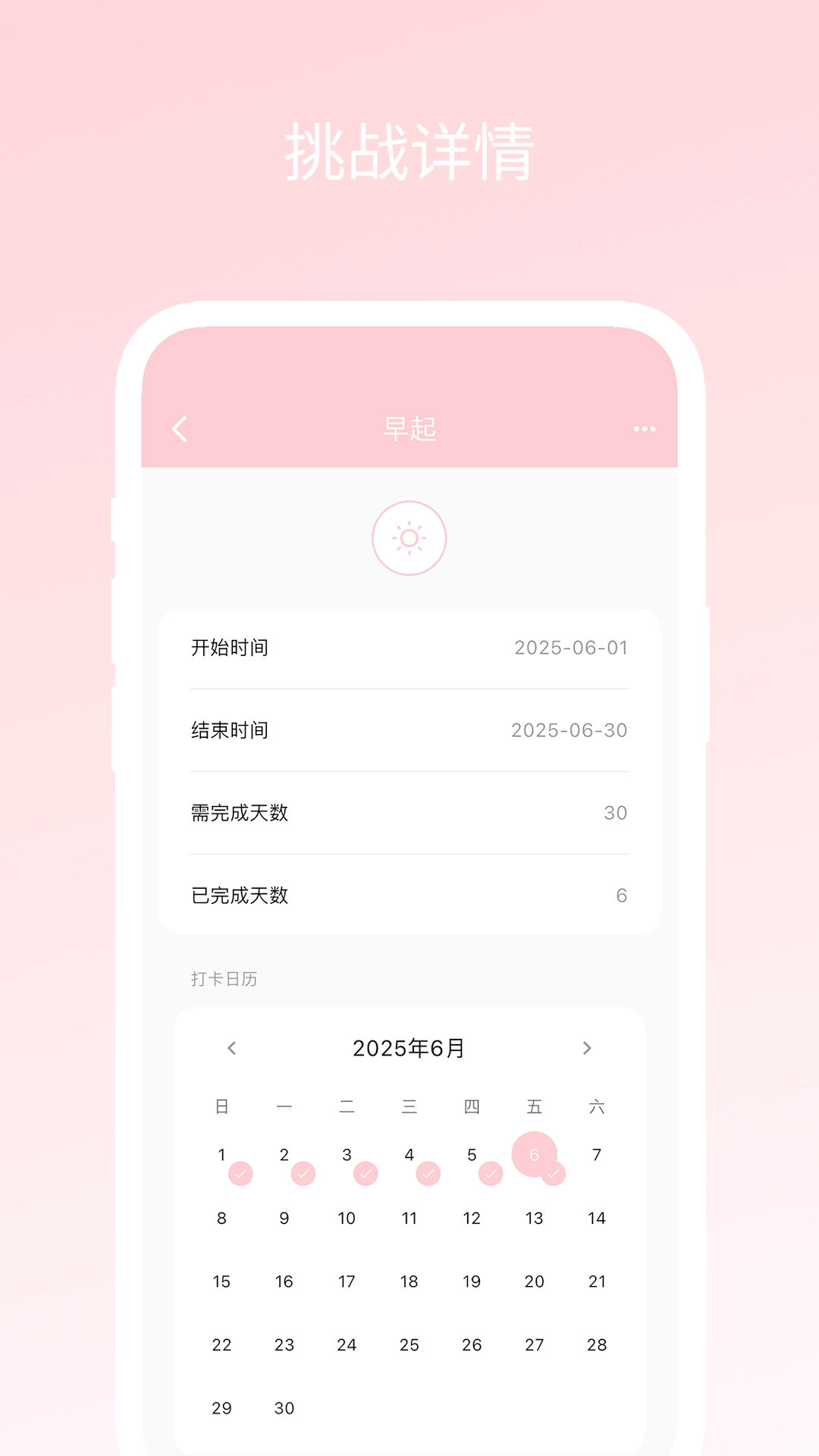 挑战日历:以日历的形式,直观呈现挑战与打卡情况,并且能够在日历上完成补打卡和预打卡操作。
