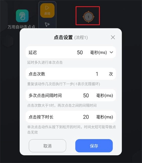 关于连点器的具体使用建议,您得参照上面的参数设置来理解其运行规则。由于我们没办法针对您的特定场景给出恰当建议,所以最好的办法是先设定一个大致的参数,要是感觉快了就往慢的方向调整,要是感觉慢了就往快的方向调整。
