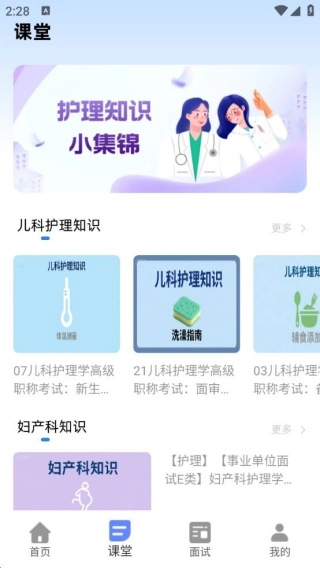 3、点击“课堂”板块,在这里你能够学习到丰富多样的课堂小知识,无论是儿科护理知识,还是妇产科知识,均有提供。