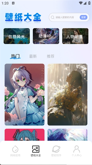 3. 轻点页面下方的“壁纸大全”,就能浏览到各类精美的壁纸,同时也能够输入关键词来实现精准查找。