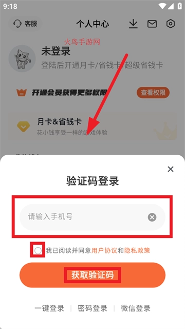离开登录界面后,在相应位置输入手机号,同时勾选“我已阅读并同意用户协议和隐私政策”,接着点击“获取验证码登录”,如此操作即可。