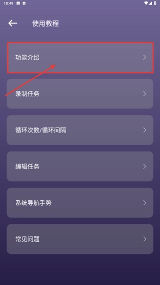 2. 在教程使用页面,点击“功能介绍”选项,即可进入功能介绍界面。