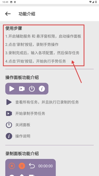 3、于功能介绍界面,查看使用步骤。