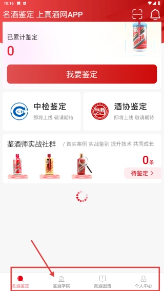 1. 进入上真酒网,点击页面底部的鉴酒学院选项,从而进入鉴酒学院页面。