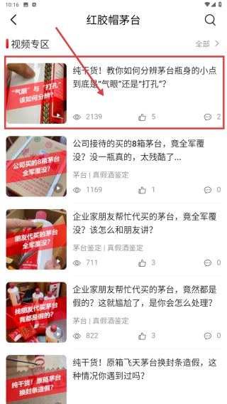 3、在涉及红胶帽茅台的相关内容页面,观看此鉴酒教学视频。