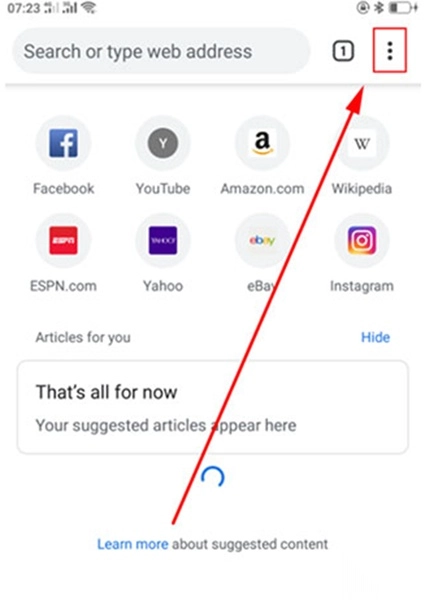 1. 点开手机里的谷歌浏览器,接着点击右上角的菜单按键。