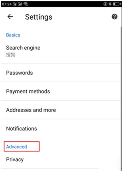 3、进入设置界面后,寻找到并点击“Advanced”(高级)模块。