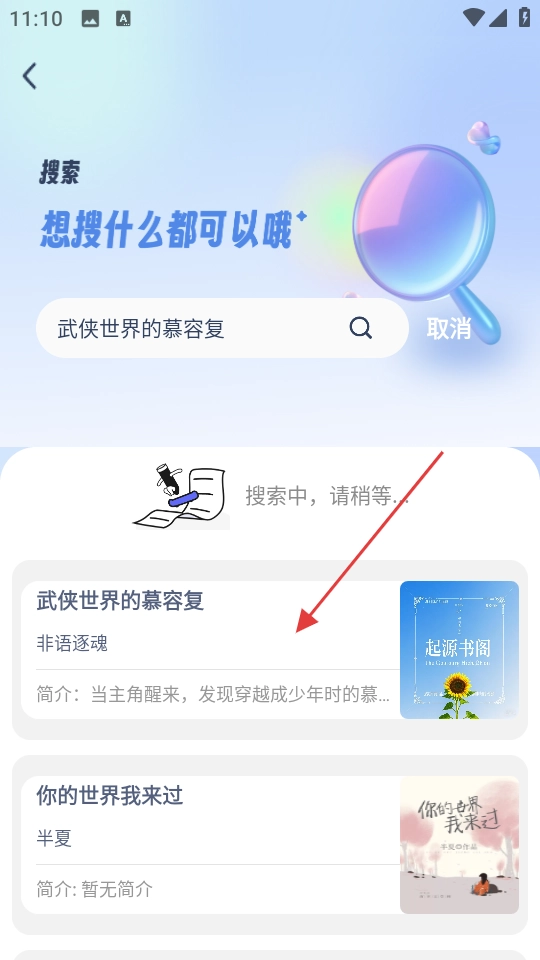 2. 在搜索页面当中,点击武侠世界里的慕容复。