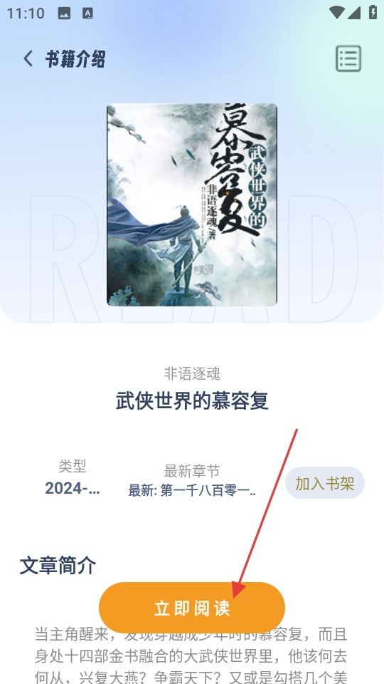 3、当进入书籍介绍页面后,点击“立即阅读”即可开启阅读。