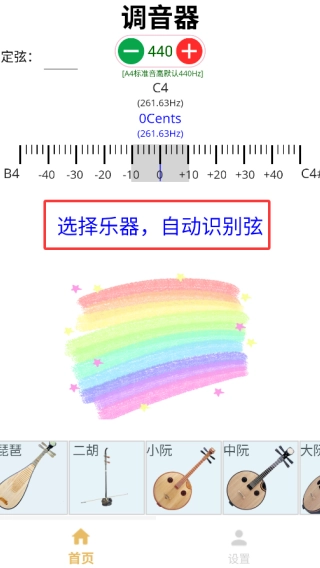 2、进入平台首页后,你能够选择乐器,系统会自动识别琴弦,使调音更为精准。