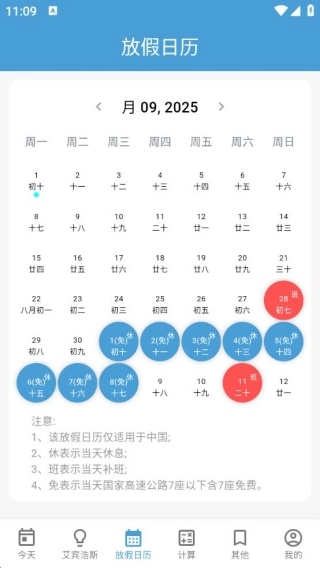 2、中国专属放假日历,清晰标注放假、补班、高速免费等信息,让你提前知晓假期安排,方便规划出行、工作或学习计划。