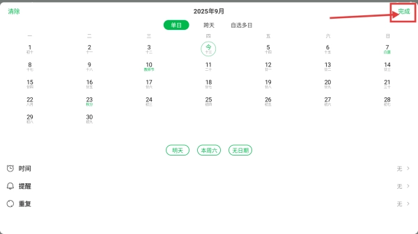 3、完成设置后,点击右上角的“完成”按钮,保存已添加的清单或日程。