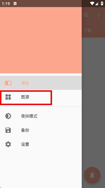 2. 在侧边栏里,点击“图源”,进入图源设置页面。