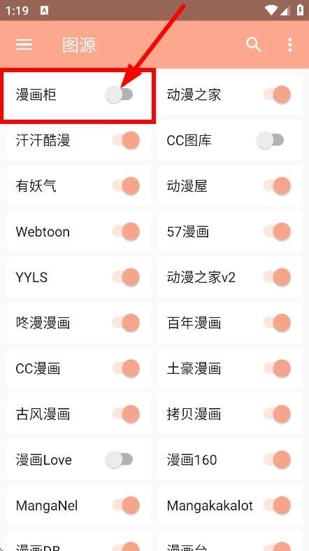 3、在图源设置界面,能够对漫画柜等图源进行开启或关闭操作。