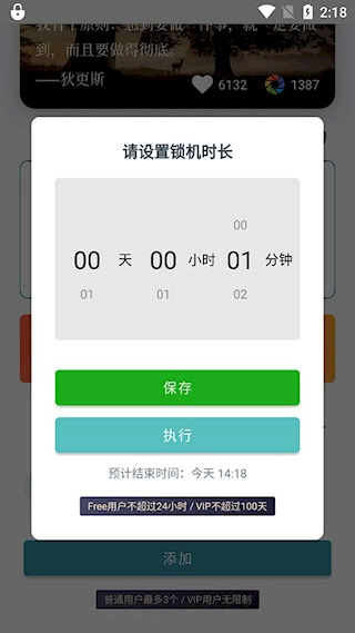 7、根据需求设定锁机时间,设定完毕后点击“执行”。