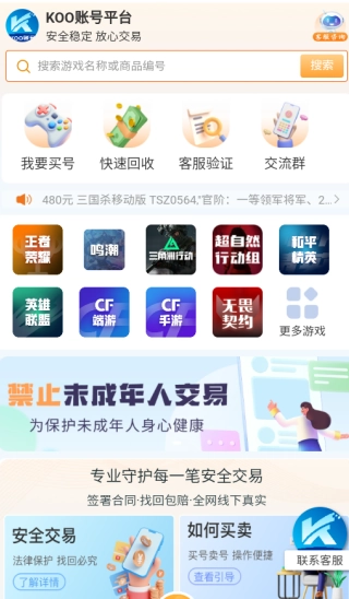 koo账号软件 Koo账号软件专注于游戏账号交易,玩家能在这款软件里迅速找到合适的账号,通过在线支付就能轻松获取。软件内价格公正透明。要是你有闲置账号,也能在上面挂售,操作极为简便。交易详情一目了然,无论是购买账号尽情畅玩,还是出售账号实现变现,它都是相当不错的选择。