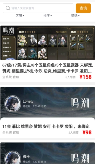 2、借助平台先进的搜索筛选功能,玩家仅需输入游戏名称和账号等级,即可快速定位到满足自身需求的账号。