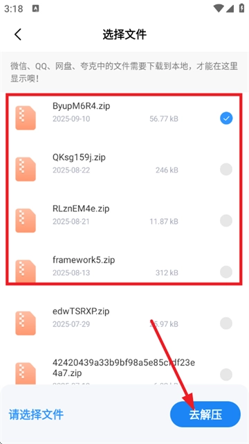 4、挑选出你想要解压的文件,最后点击“去解压”按钮就可以了。