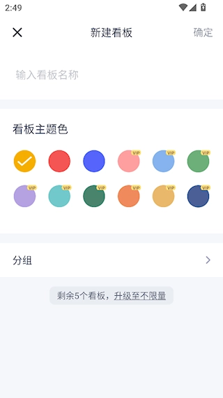 2、在相应位置输入看板名称,挑选主题色,随后点击右上角的“确定”按钮。