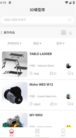 2. 在主页面能够直接看到3D模型库,在页面上方输入关键字就能进行查找。
