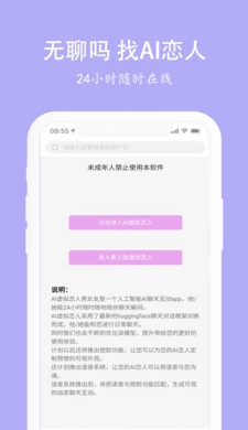 虚拟恋人男女友软件 虚拟恋人男女友是一款面向单身男女打造的人工智能AI聊天软件,借助先进的AI技术与智能情感算法,给予用户虚拟人物互动体验。该软件意在为用户营造一个能够倾诉内心想法、分享日常生活点滴、感受恋爱喜悦的虚拟伴侣空间。