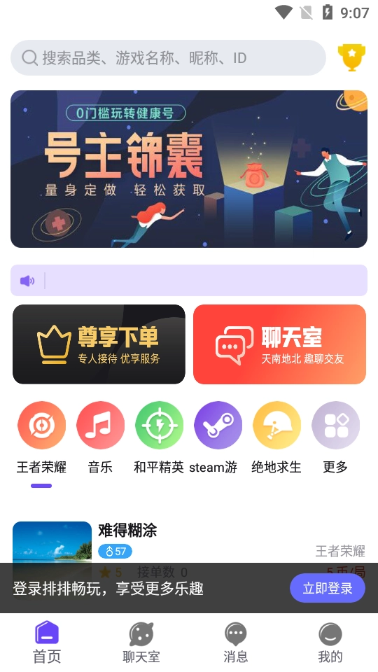 排排畅玩作为一款游戏陪玩软件,致力于为玩家打造专业且高品质的游戏陪玩体验。在这个平台上,您能结识到形形色色的游戏达人,无论是技术精湛的游戏高手,还是经验丰富的职业玩家,亦或是青春靓丽的美女陪玩,都能与您携手组队,一同开启热血刺激的开黑之旅,尽情享受游戏带来的无穷乐趣。