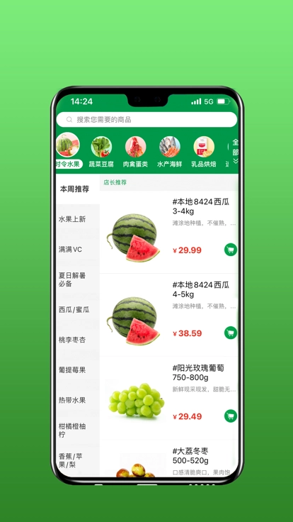 2. 能让各位用户无需出门,直接在线挑选新鲜食材并完成购买。