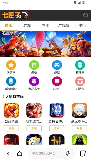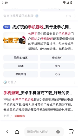 2、进入软件首页,呈现在眼前的是一个简洁的界面,在此界面,能够直接在搜索框内输入网址或者关键词。