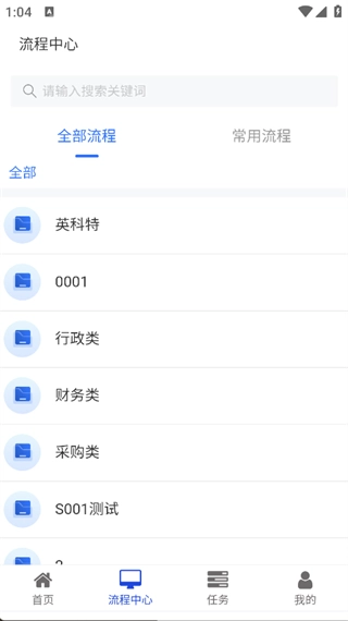 4. 点击页面底部的“流程中心”,就能看到各类工作的流程选项,可根据自身需求进行查看。