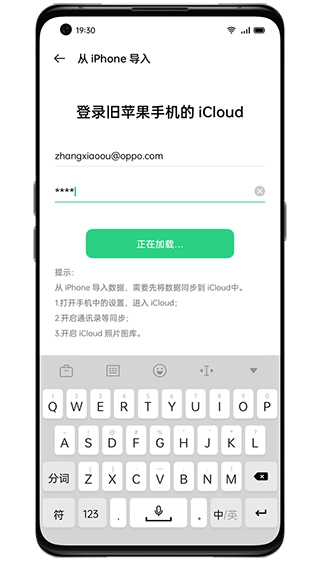 1. 开启OPPO手机搬家这个应用程序,接着挑选“从iPhone导入”选项。随后输入苹果手机对应的iCloud账号以及密码。