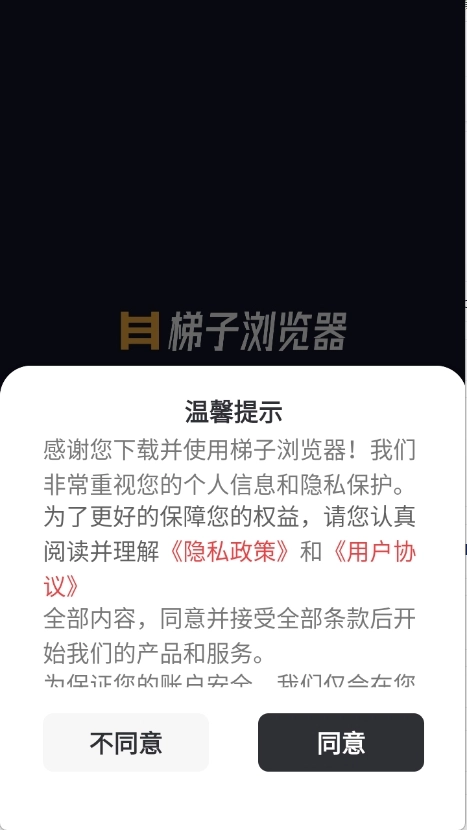 1、用户需先在本站梯子浏览器中,查看并同意隐私政策以及用户协议。