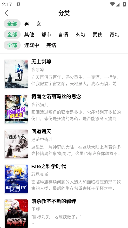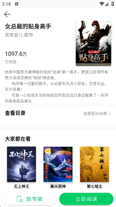 4、挑选感兴趣的小说,进入详情页面。