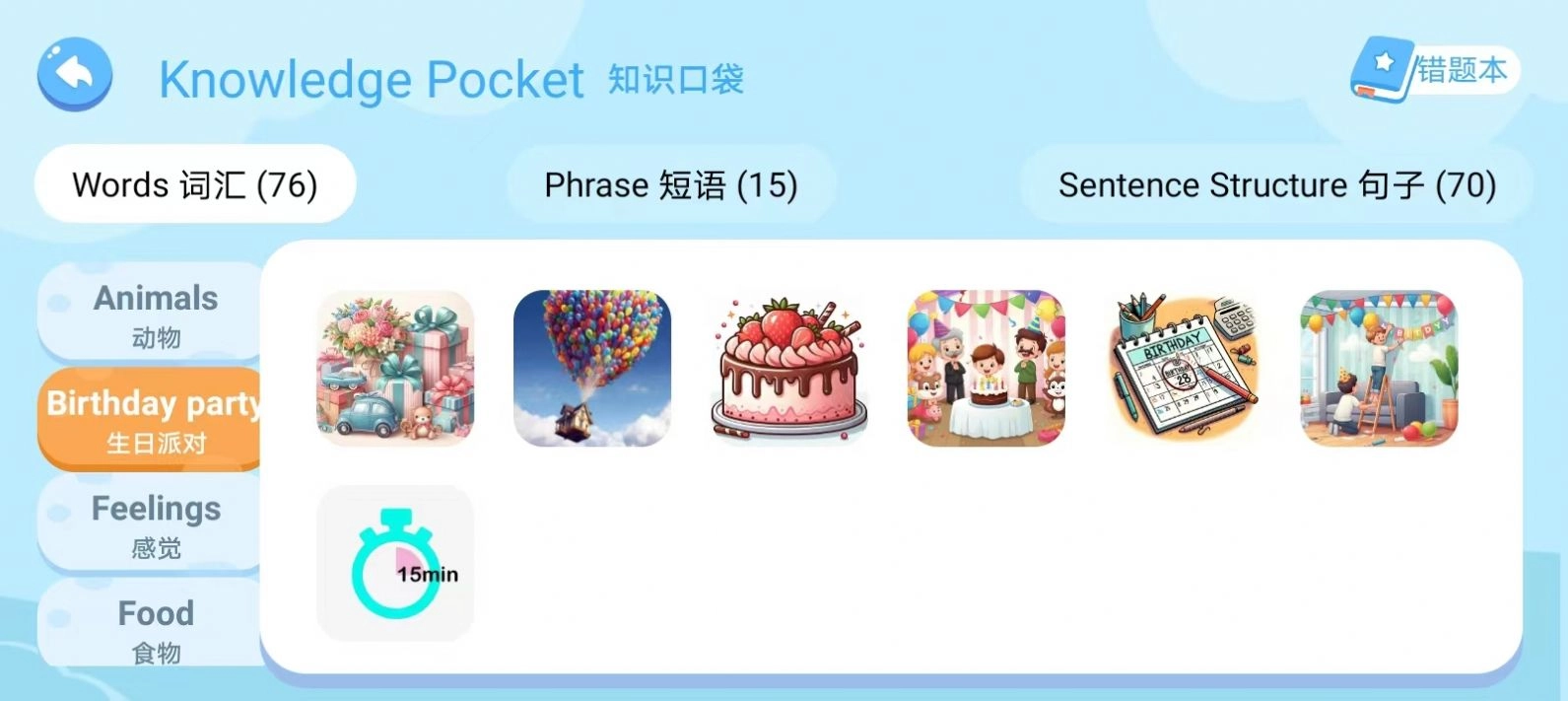 3. 能够依据孩子的年龄与语言能力自动推荐适配的学习内容,助力孩子高效学习英语。