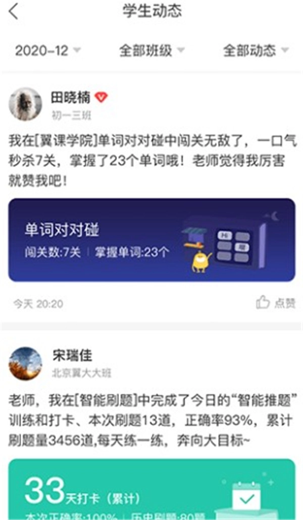 1. 用户在软件上可依据学生的状态进行筛选,且该软件具备丰富的学习资源。