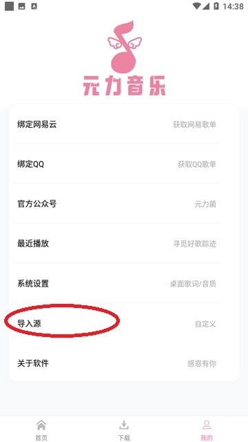 3、于个人中心里寻得“导入源”功能,点击后进入操作界面。