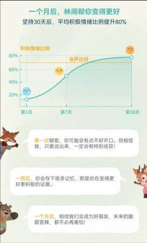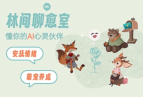 1. 在林间的聊愈室里,用户能够开启一段疗愈之旅。当你倾诉心声时,可爱的小动物会协助你梳理总结情绪的类型与数值。