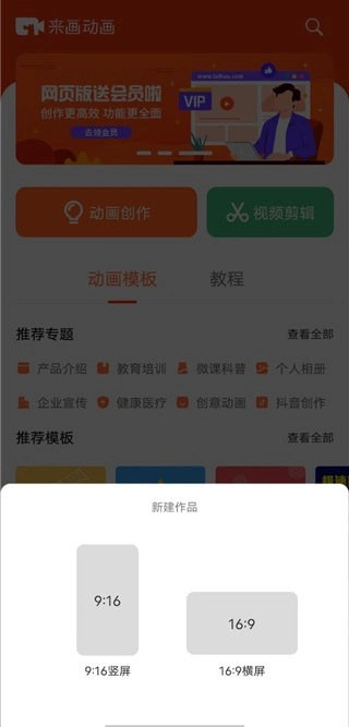 2、用户能够选择希望制作的动画是横屏模式还是竖屏模式。
