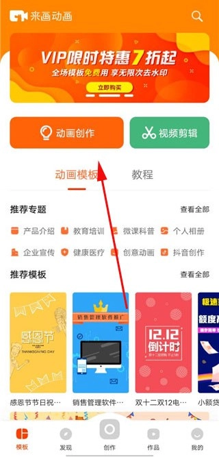 1. 打开来画动画,在首页点击选择“动画创作”这一功能选项。
