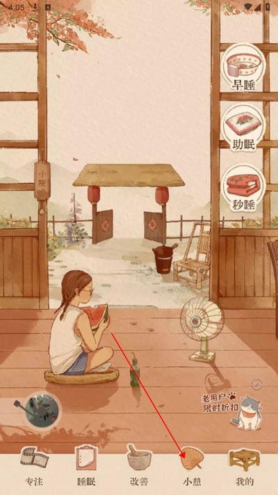 1. 打开软眠眠软件后,点击页面底部的【小憩】功能。