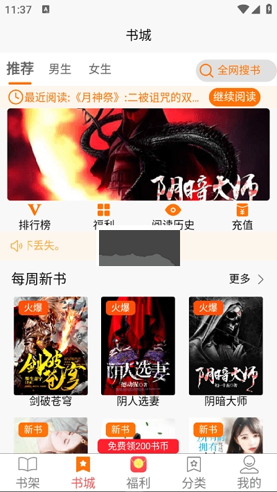 这里有正版的精品图书,还有网文界的神作,任你挑选。