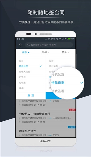 契约锁电子合同,可显著提升传统合同签署环节的传递效率,削减纸质合同在存储、查询、保管方面的成本与操作难度。让您能够随时随地签署并管理合同。