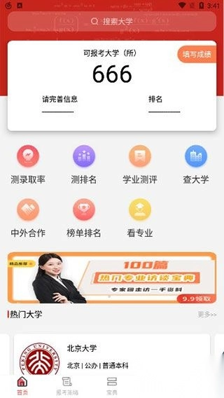 2. 仅需输入你的高考分数、文理科以及理想大学,就能为你测算录取率。