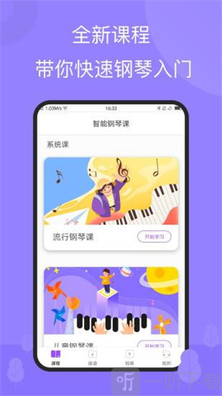 1这里收纳了大量针对不同水平层级的钢琴弹奏课程,用户能够依据自身的学习等级进行挑选学习。