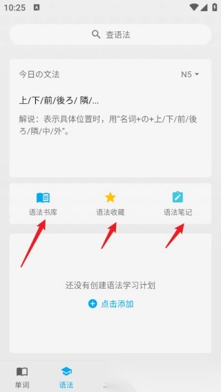 2. 规划语法学习路径:在“语法”页面,你能够浏览每日更新的语法知识,不仅可以收藏语法要点,还能编写语法笔记,助力你深入理解并掌握句型结构。