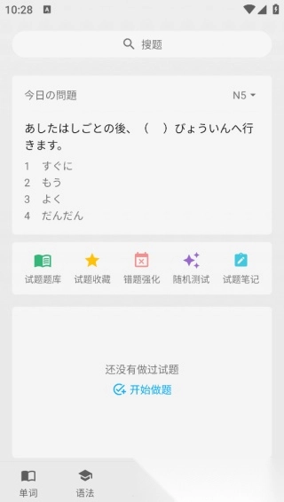 日语学习君是一款安卓手机软件,专为想通过自学提升日语水平的用户打造,能全面提升听、说、读、写能力。对于备考日语考试的用户,不仅能观看课程视频,还能刷题。答题结束后,系统会迅速批改,并指出答错的题目,助力用户加深对日语的理解。