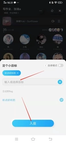 4、于弹出的页面里输入“目标”,接着点击下方的“入座”按钮。