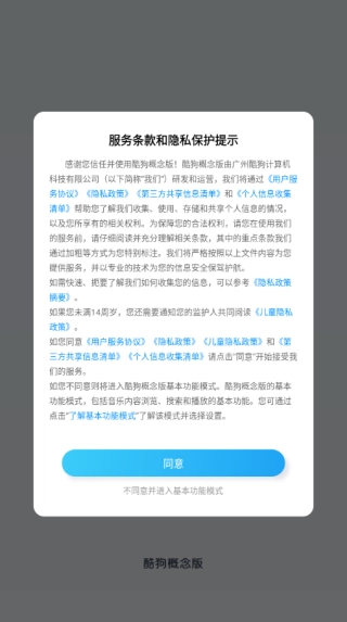 1. 开启软件,查看服务条款及隐私保护提示,点击同意后便能开始使用该软件。