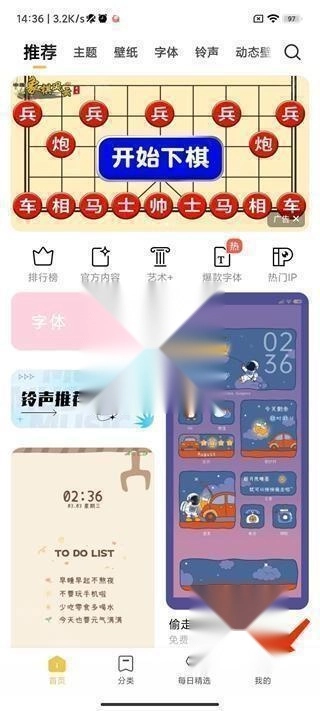 1. 开启小米主题国际版App,然后点击右下角的【我的】