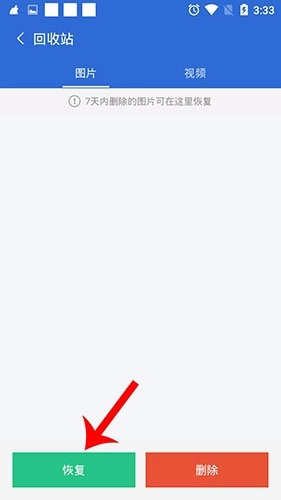 2. 轻点右上角的回收站;